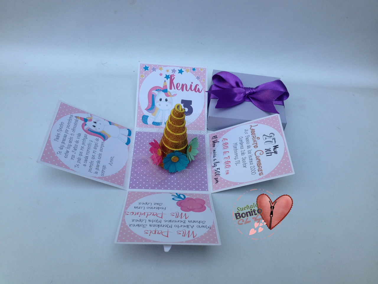 Invitacion Cajita Explosiva Unicornios Suenalo Bonito
